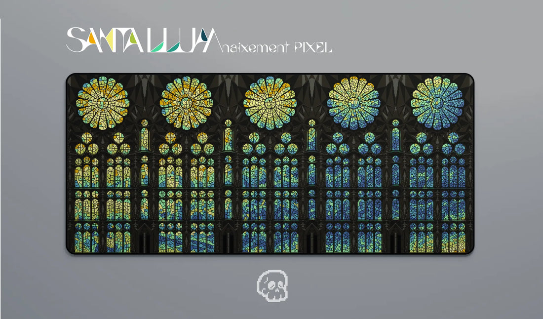 Santa Llum is a collection of keycaps born from the contemplation of the stained glass windows of the Sagrada Família in Barcelona. They are not mere ornamentation: they are a language. In them, light does not decorate, it shapes. It transfigures stone and air. It touches the heart.